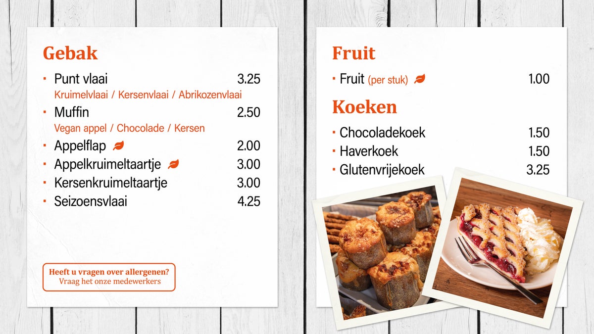 Onze menukaart