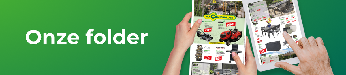 In de actuele folder van Van Cranenbroek vind je elke week scherpe aanbiedingen en aantrekkelijke acties. Op deze pagina bekijk je eenvoudig de nieuwste folder met actuele folderaanbiedingen op het gebied van tuin, dier, kleding, gereedschap en vrije tijd.
