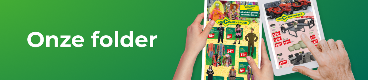 In de actuele folder van Van Cranenbroek vind je elke week scherpe aanbiedingen en aantrekkelijke acties. Op deze pagina bekijk je eenvoudig de nieuwste folder met actuele folderaanbiedingen op het gebied van tuin, dier, kleding, gereedschap en vrije tijd.